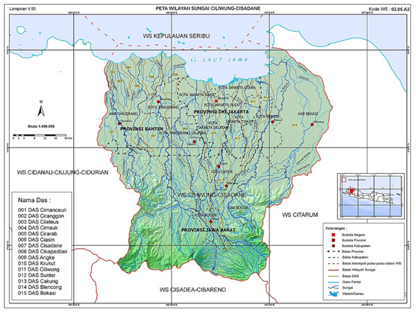 Peta wilayah Sungai Ciliwung-Cisadane (kode WS 02.05.A2) yang mencakup DAS Ciliwung.